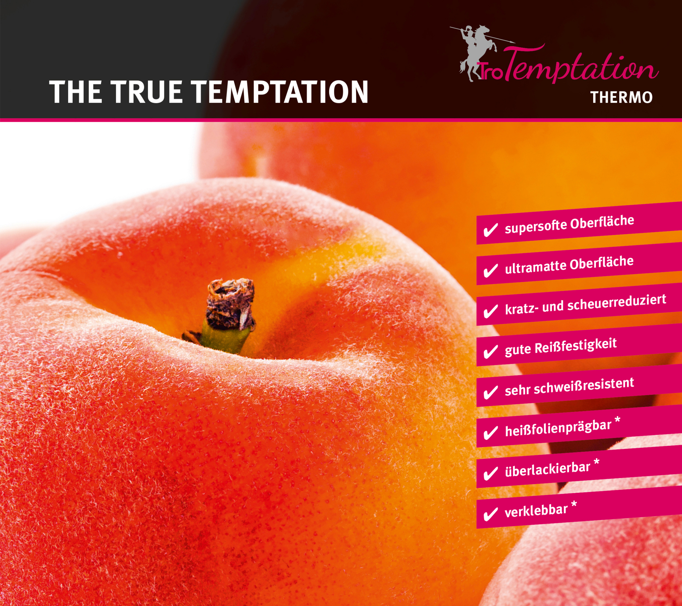 Die TroTEMPTATION® THERMO ist eine mit Polyurethan versehene, biaxial orientierte Polypropylenfolie, die rückseitig mit einem EVA Hotmelt versehen ist. Dieser benötigt Zeit, um optimal aushärten zu können.