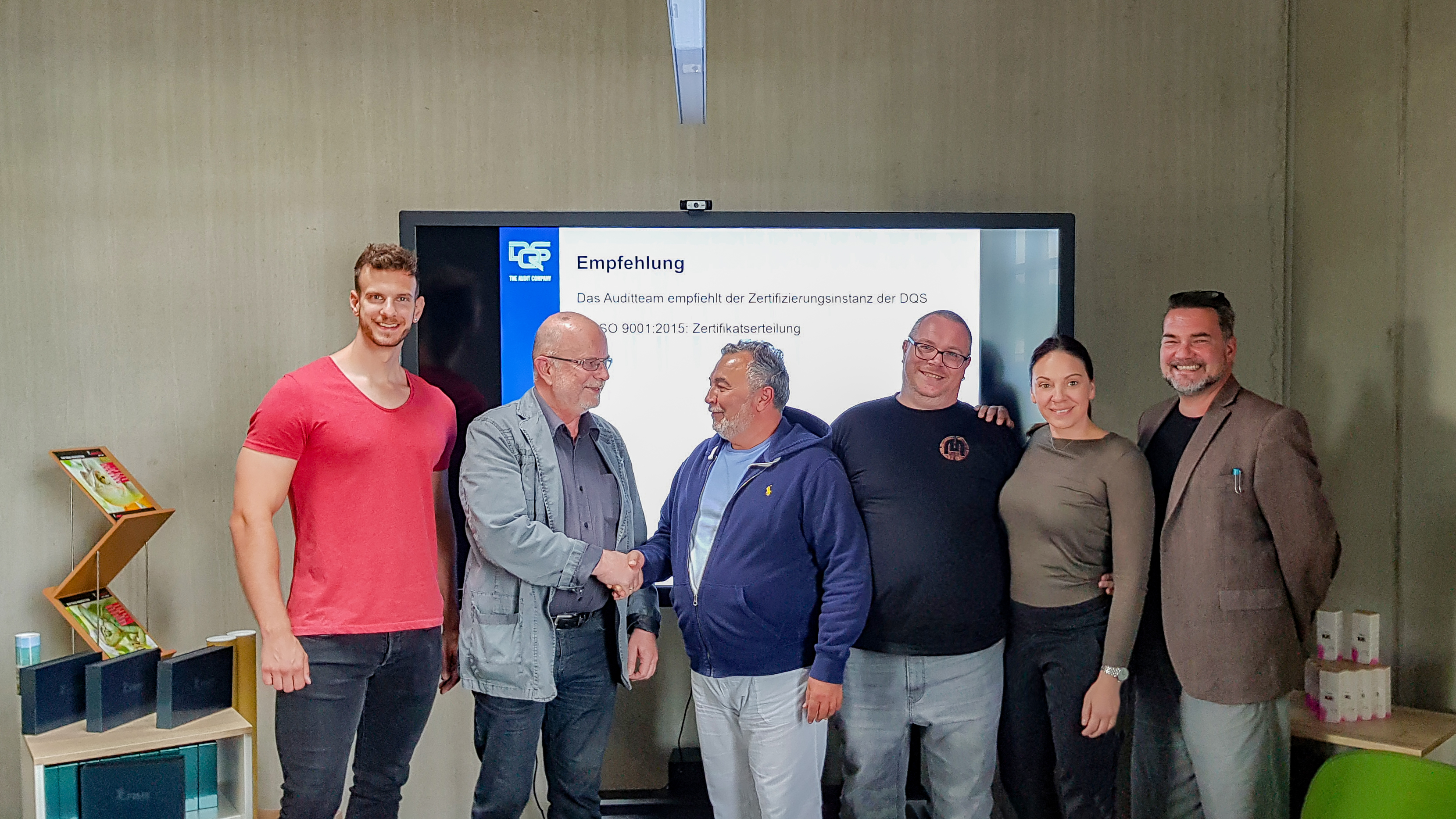 The external auditor for DQS, Dipl. Ing. Knut Roland Popp, who also performed the preliminary audit for the company in April this year, was very satisfied with the implementation of all tasks. He was able to confirm that all regulations had been fully complied with, plus he found no deviations from the quality system. Mr. Popp mentioned the extensive production documentation and quality records, which will enable comprehensive traceability of product quality in future years, as an extra positive aspect of the certification audit.