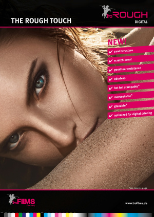 We offer TroROUGH®, an acrylic coated, sand structured, biaxially oriented polypropylene foil, as a wet and a thermal and digital film. All films are extremely abrasion- and scratch-resistant.